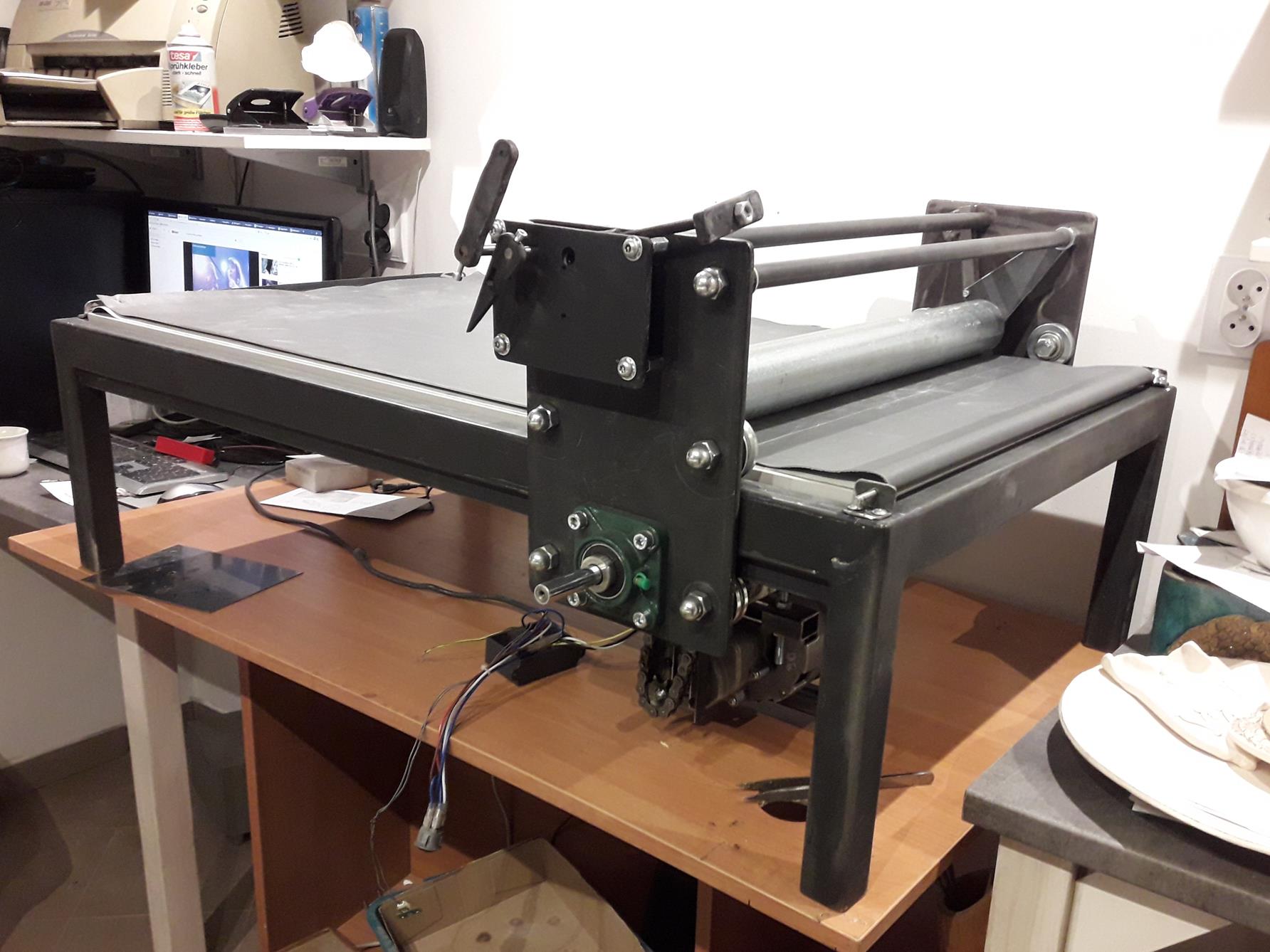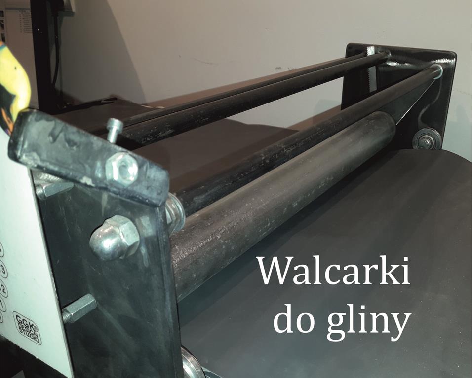 Walcarki do gliny według własnego projektu. Wszystkie elementy z wysokogatunkowej stali, łożyskowane rolki. Charakteryzują się dużą stabilnością pracy. Preferowany napęd elektryczny - lepsze walcowanie gliny - ale mogą też być z zastosowaniem napędu ręcznego. Znaczna waga (około 120 kg) zapewnia walcarce bezproblemową pracę nawet przy walcowaniu dużych plastrów gliny. Możliwe do wykonania różne rozmiary walcarek - wymiar podstawowy to 100 x 60 cm. Tylko zamówienie - czas realizacji około trzech tygodni. Możliwy dobór kolorystyczny elementów konstrukcyjnych urządzenia.